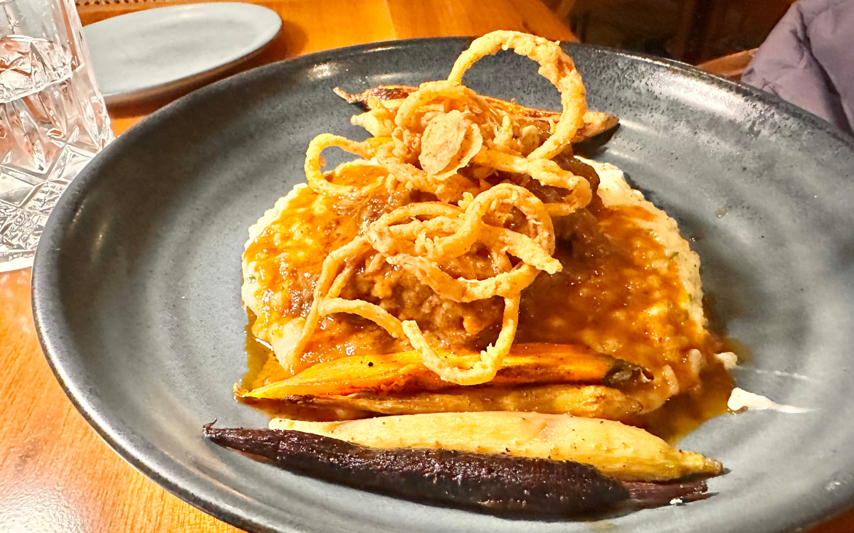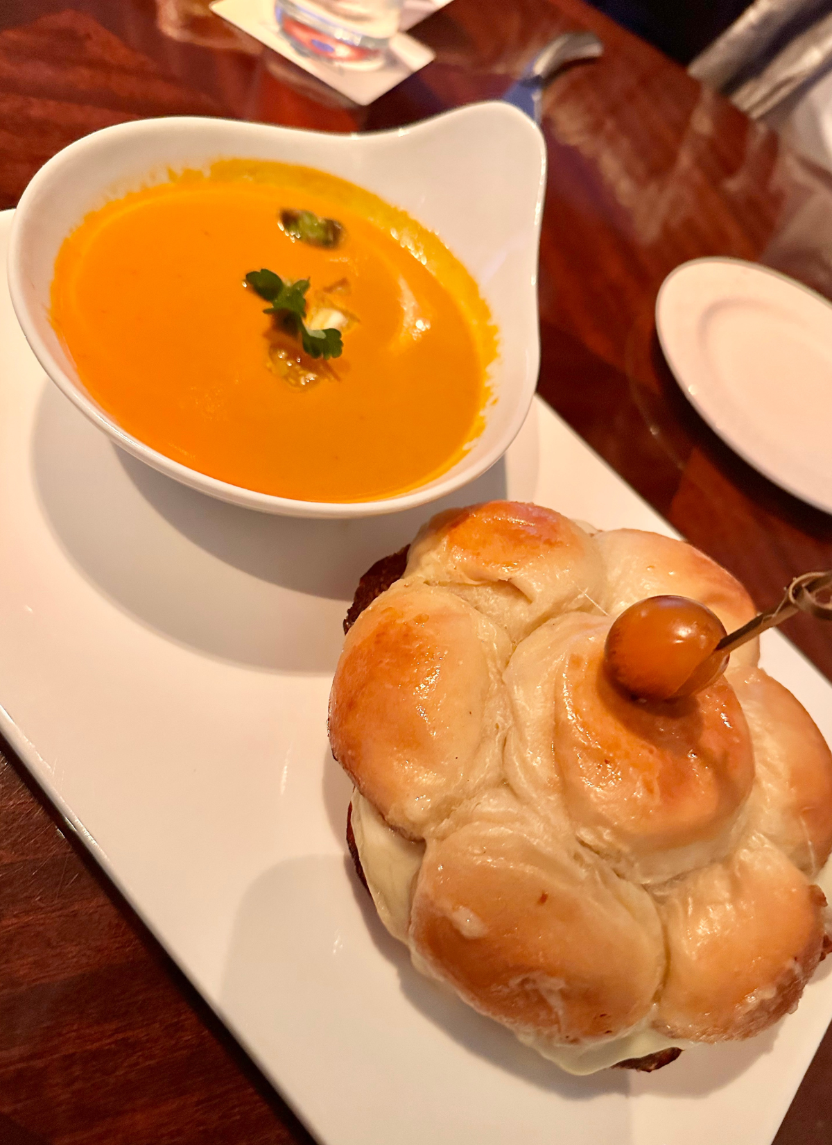 I had the grilled cheese and tomato soup (the grilled cheese is made on their famous Parker rolls and it’s divine) but we also loved the fish tacos and filet sliders.